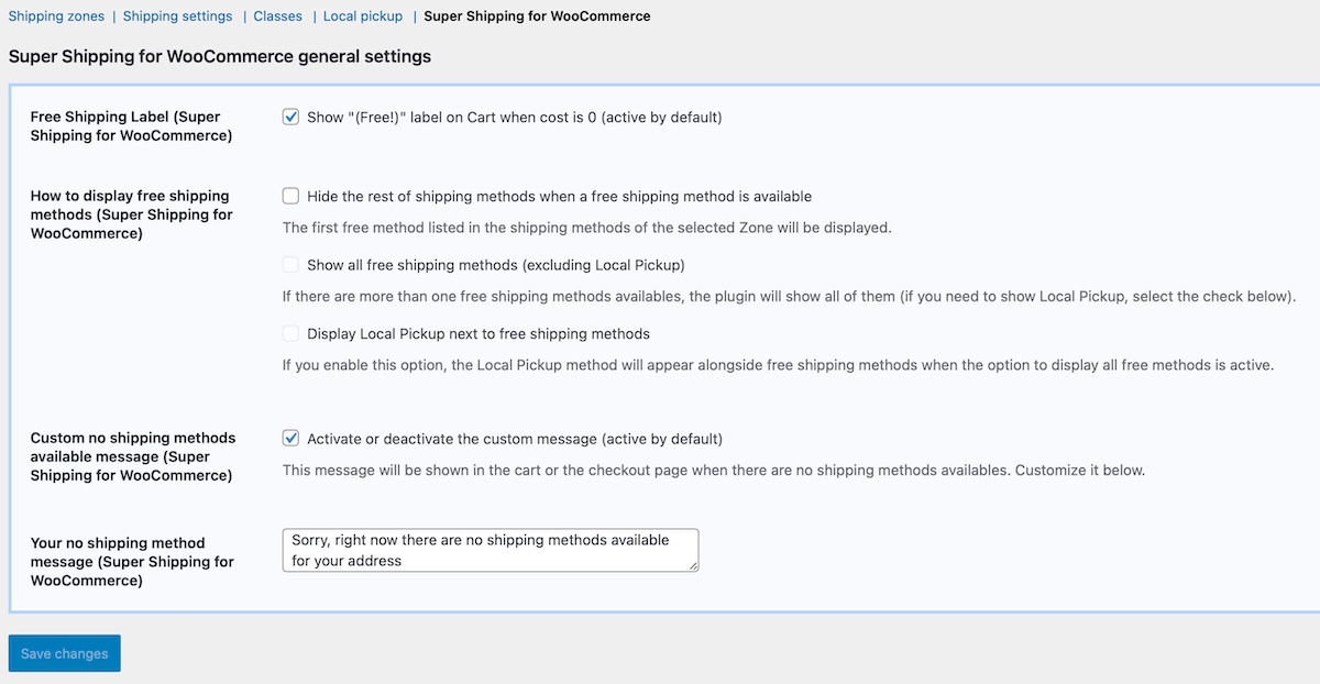 Super Shipping for WooCommerce has a set of general settings that directly affect the plugin's behavior.