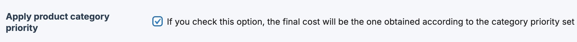 When category priority is enabled, only the cost of the highest-priority category will be applied.
